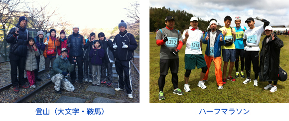 ハーフマラソン(丹波・宇治川・大阪高槻他)・フルマラソン(京都・大阪)・登山(京都・滋賀周辺)・ボーリング・海釣り・ゴルフ・春秋にBBQ・たまに飲み会・グルメ会・銭湯めぐり・約2、3名ウルトラマラソン…など)